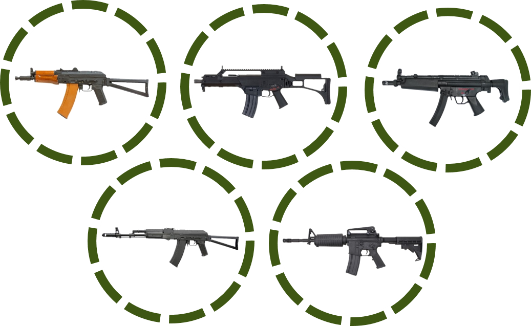 из оружия внешне 100% копирующего боевые образцы вооружения разных стран.